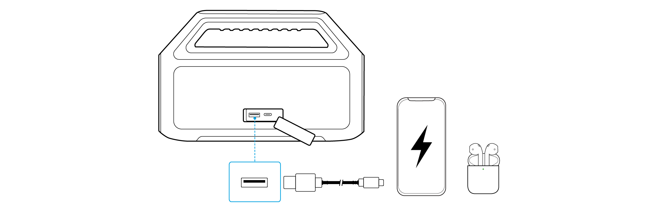 Gebruik deze speaker als powerbank om je draagbare apparaten of accessoires op te laden.