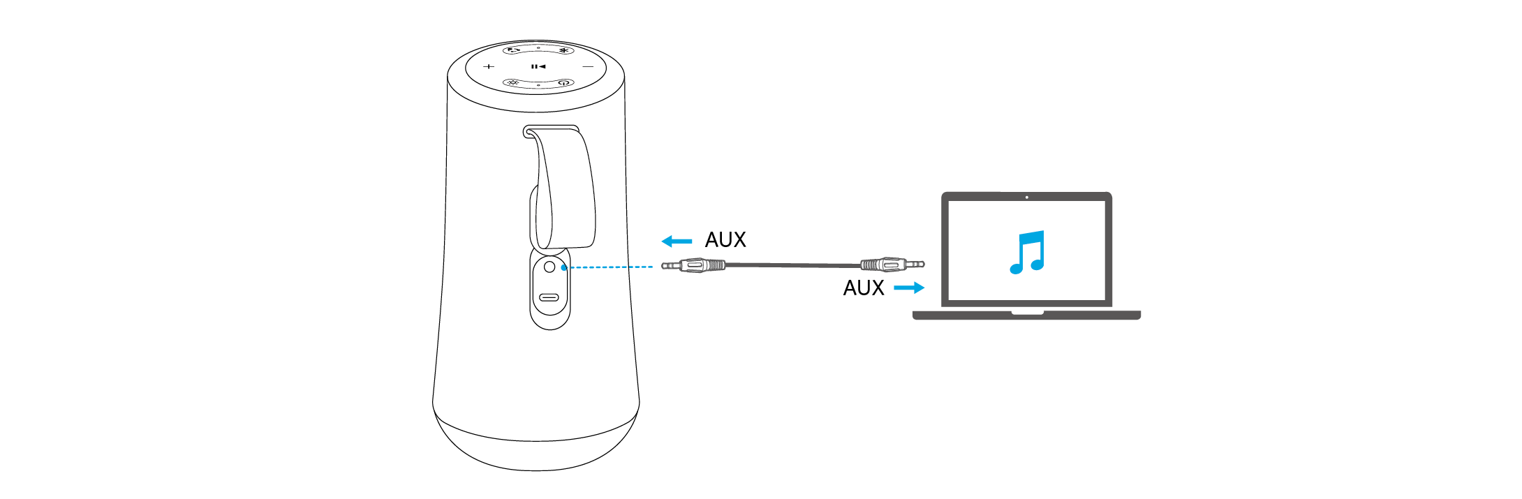 - 在使用 AUX-In 模式时,通过连接的设备控制音频播放。