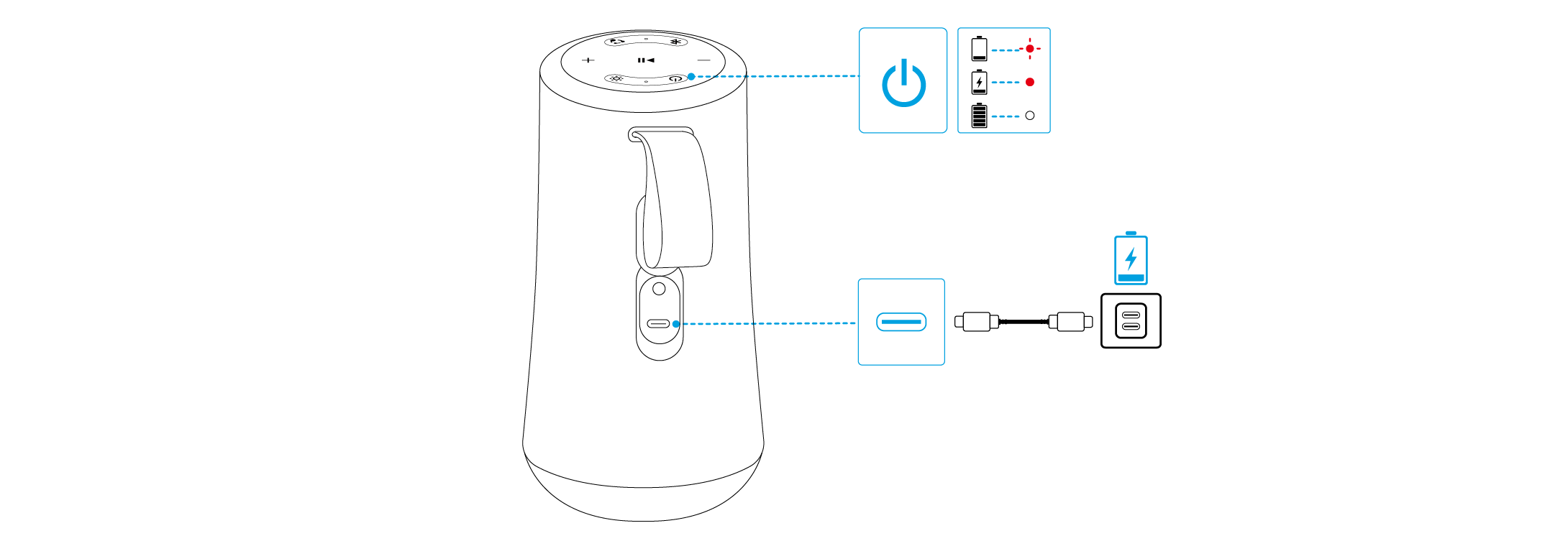 Batteriestatus: Zeigt den verbleibenden Batteriestand Ihres Lautsprechers an.