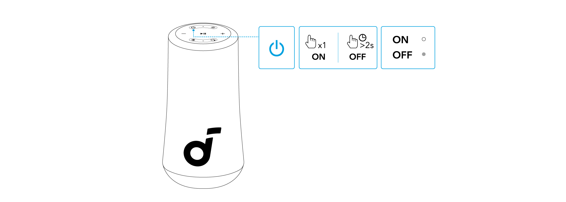 - Ogni volta che si accende l'altoparlante, questo si collegherà automaticamente all'ultimo dispositivo collegato, se disponibile all'interno del raggio Bluetooth. Se ciò non avviene, premere il pulsante Bluetooth per attivare la modalità di associazione tramite Bluetooth.