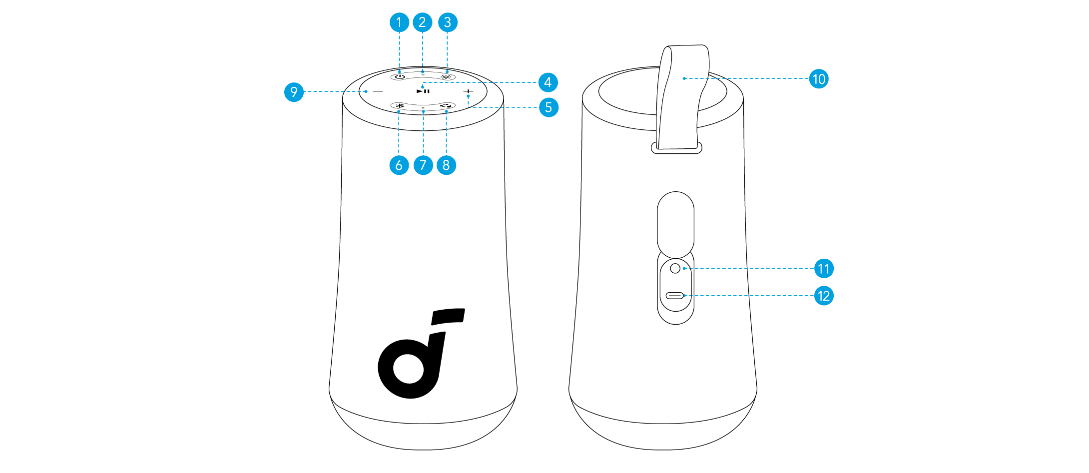 PartyCast işlevine sahip soundcore hoparlörler de bu hoparlöre bağlanabilir.