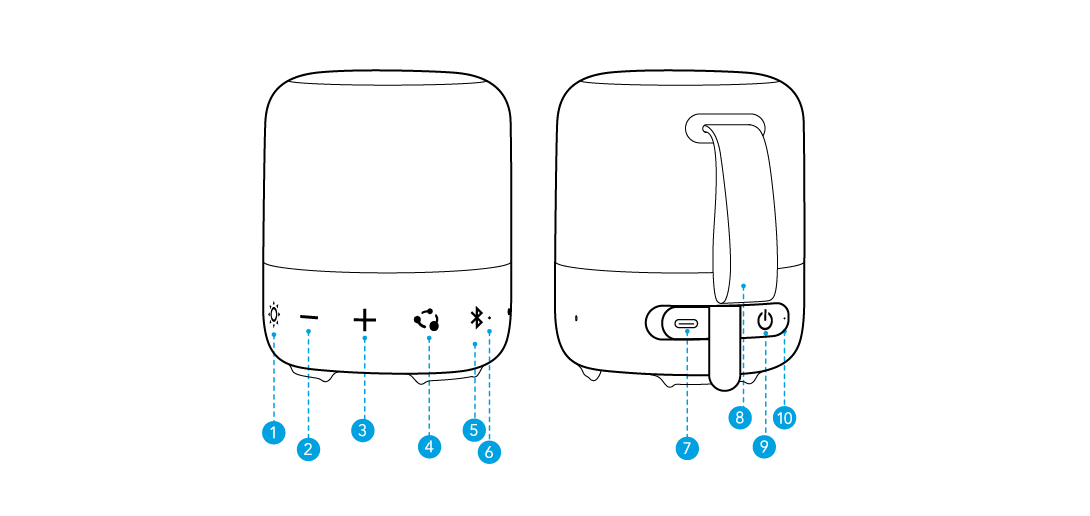 Подключите один динамик к смартфону и нажмите кнопку PartyCast на до 100 динамиках soundcore с функцией PartyCast, чтобы синхронизировать звук и свет.