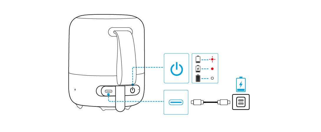 - При каждом включении колонка будет автоматически подключаться к последнему подключенному устройству в зоне действия Bluetooth. Если этого не происходит, нажмите кнопку Bluetooth, чтобы включить режим сопряжения Bluetooth.