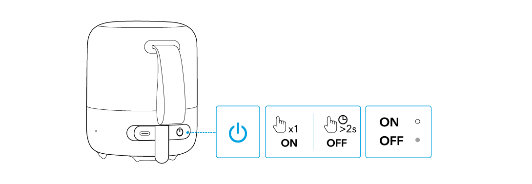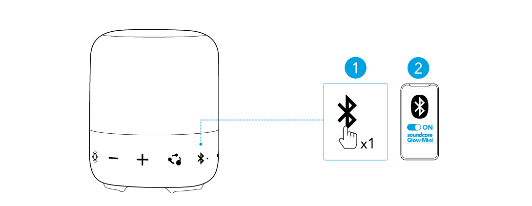 Нажмите кнопку Bluetooth, чтобы войти в режим сопряжения Bluetooth, затем выберите "soundcore Glow Mini" из списка Bluetooth для подключения.