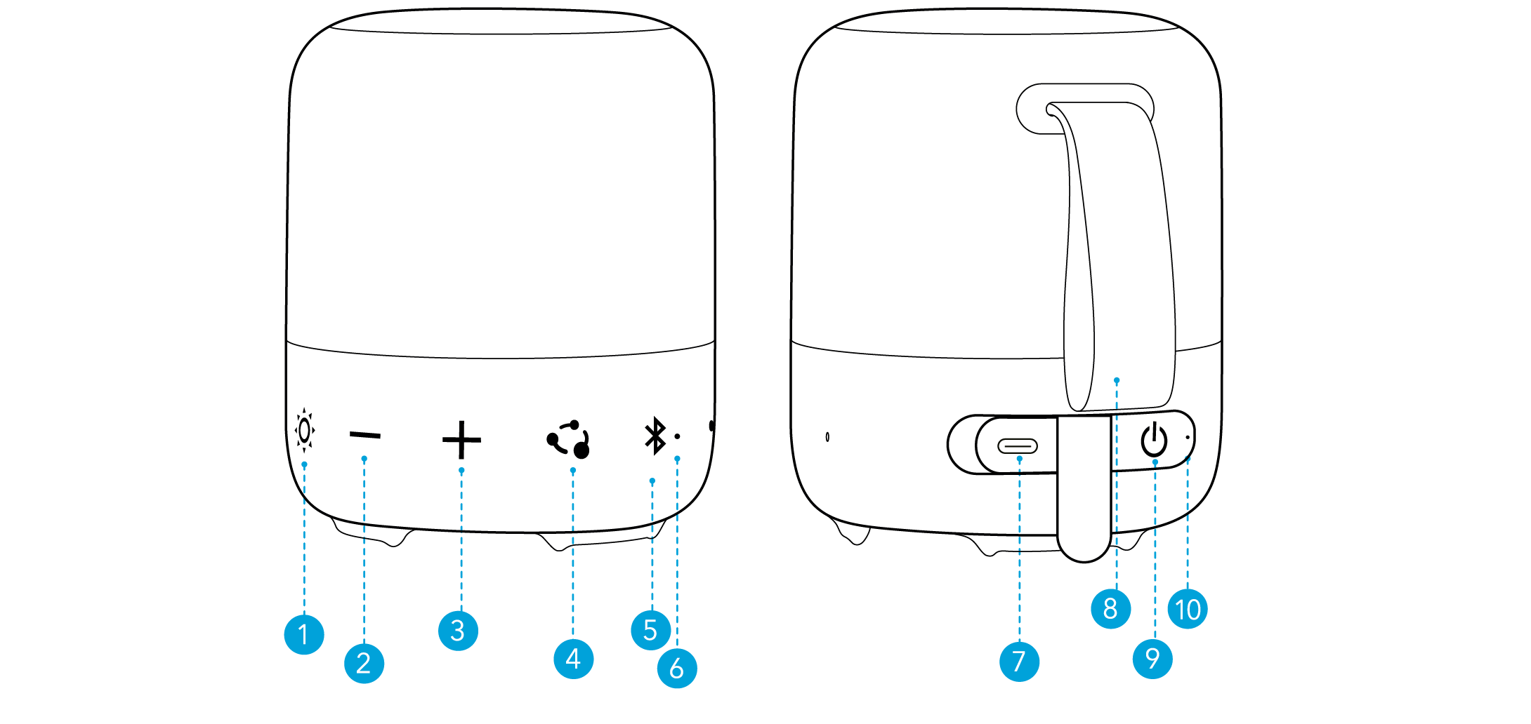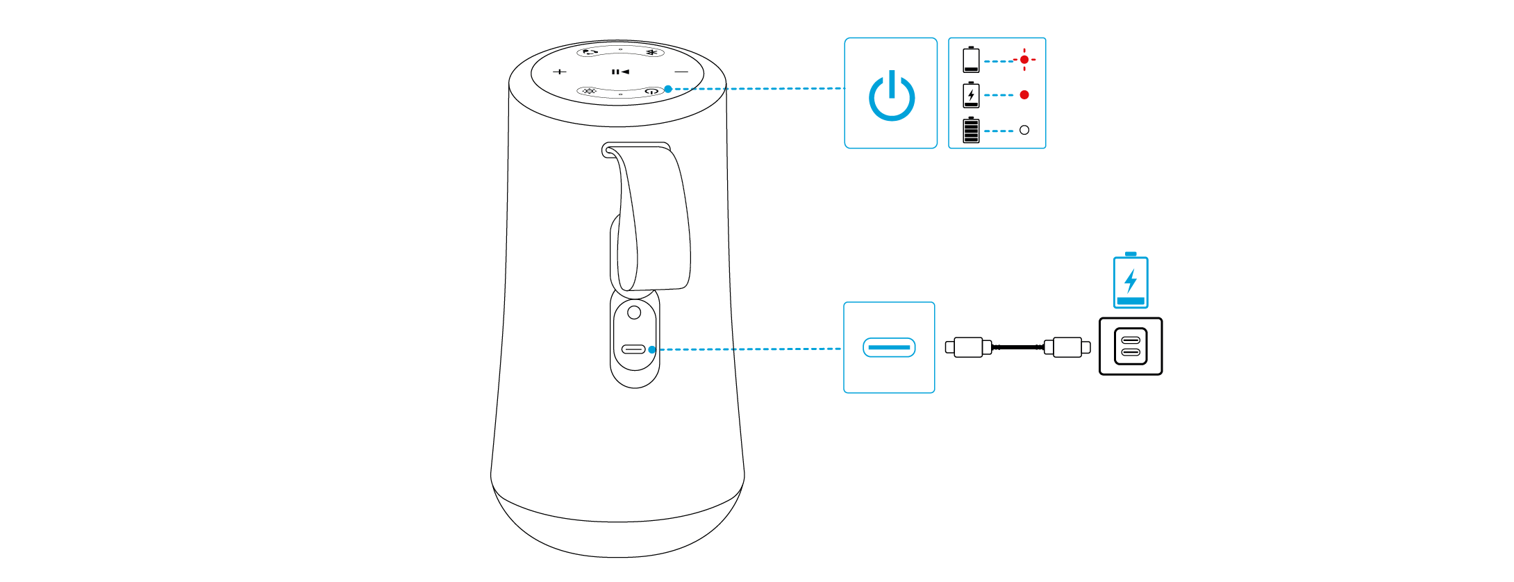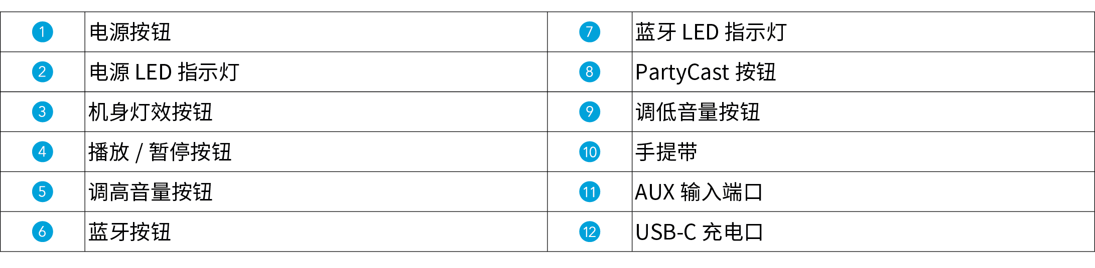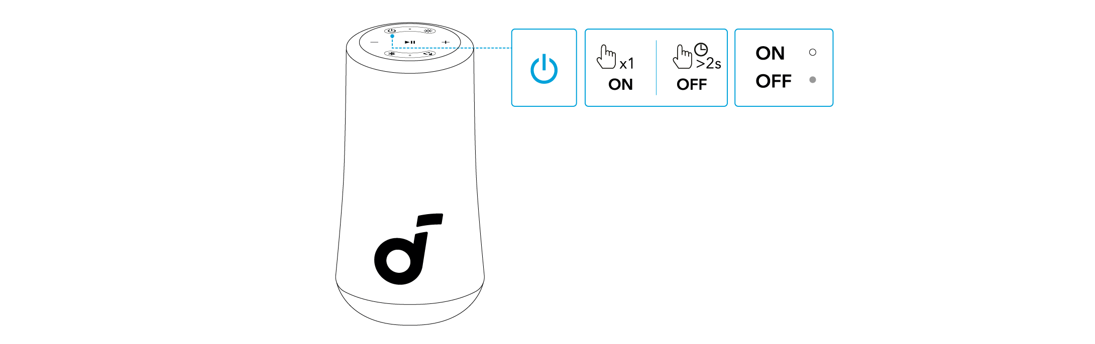 - 每次开机时,音箱都会自动连接至上次成功连接的设备(在蓝牙范围内)。如果未曾连接设备,请按下蓝牙按钮进入蓝牙配对模式。