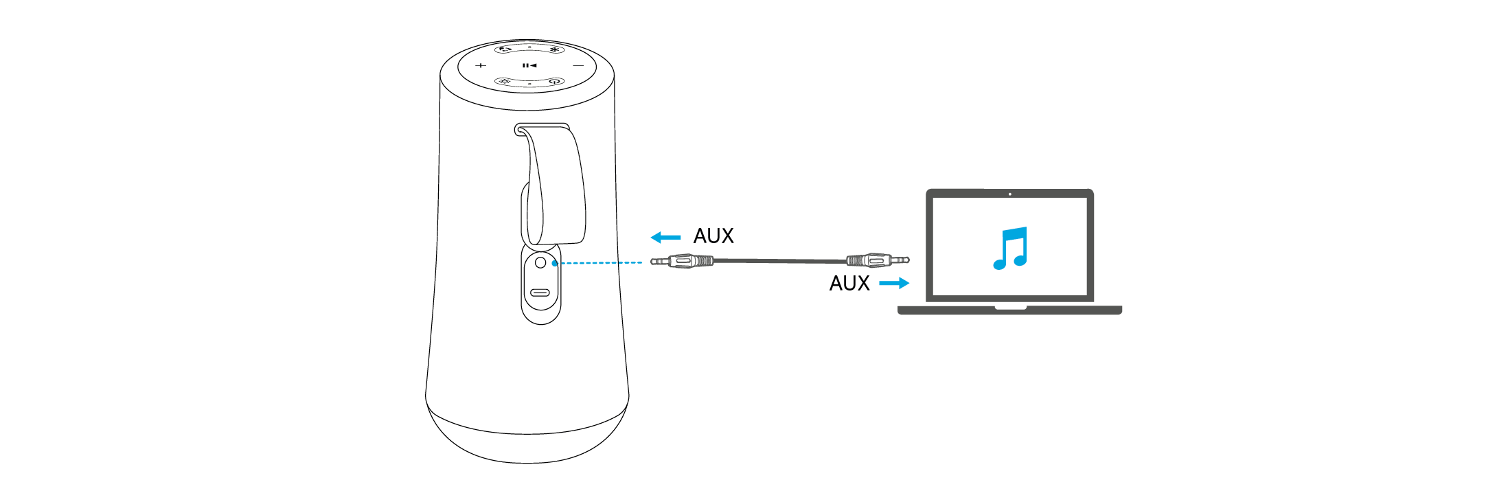 - 在使用 AUX-In 模式时,通过连接的设备控制音频播放。