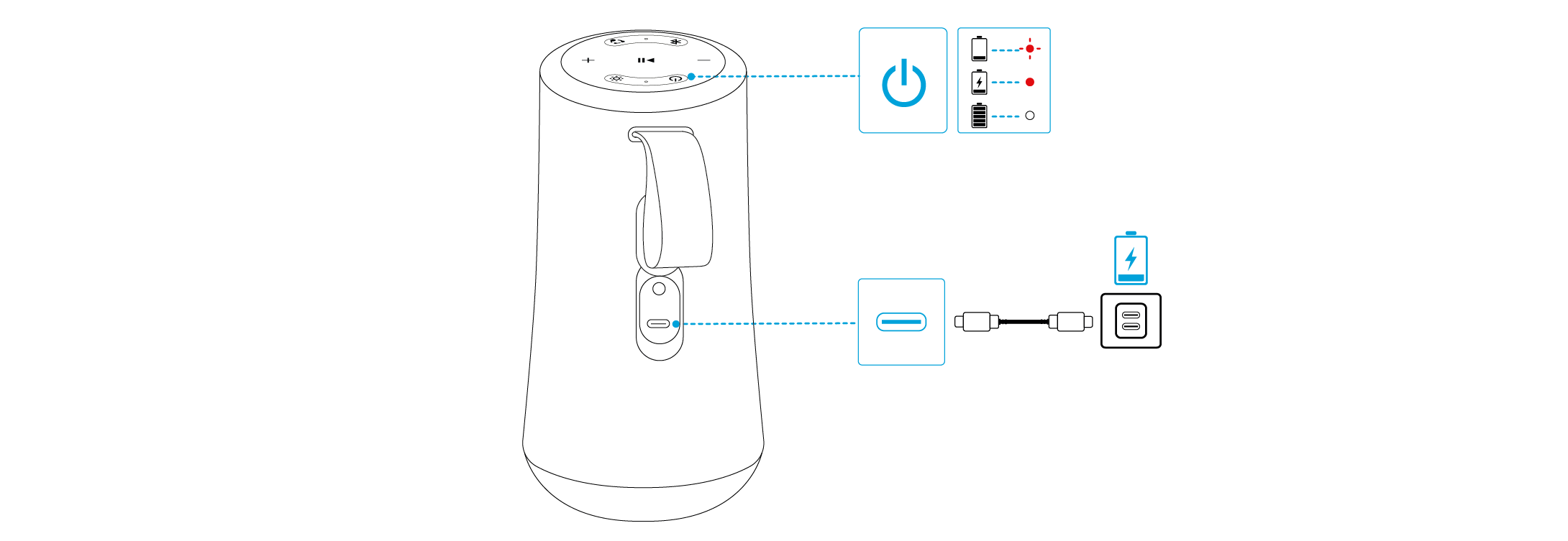 Batteriestatus: Zeigt den verbleibenden Batteriestand Ihres Lautsprechers an.