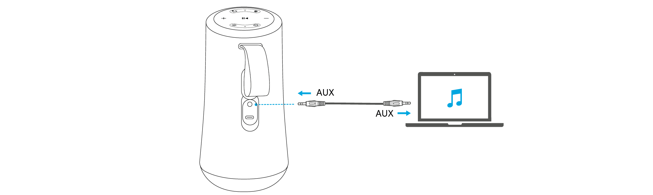 - Bei Verwendung des AUX-In-Modus steuern Sie die Audiowiedergabe über das angeschlossene Gerät.
