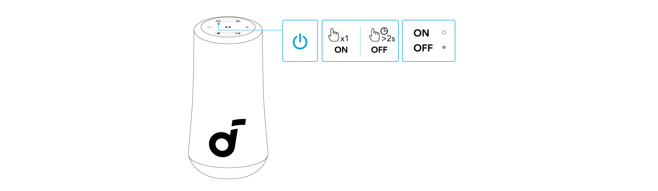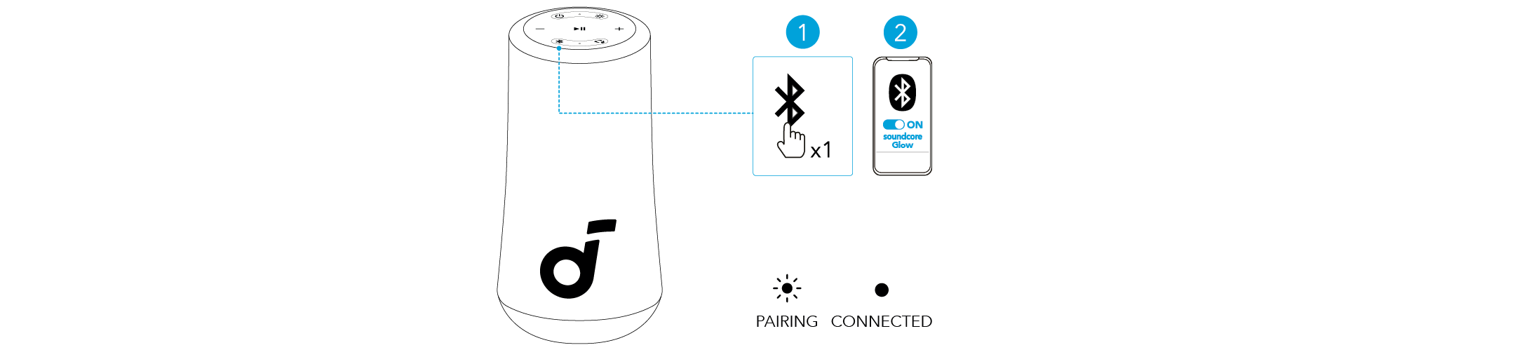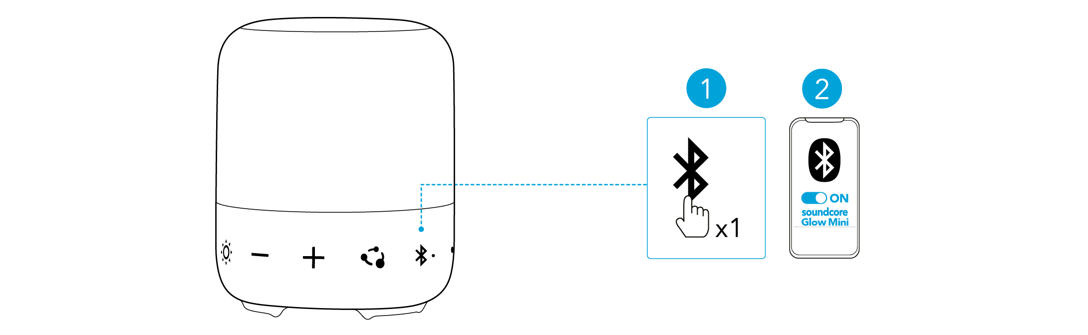 Drücken Sie die Bluetooth-Taste, um in den Bluetooth-Kopplungsmodus zu gelangen, wählen Sie dann "soundcore Glow" aus der Bluetooth-Liste aus, um eine Verbindung herzustellen.