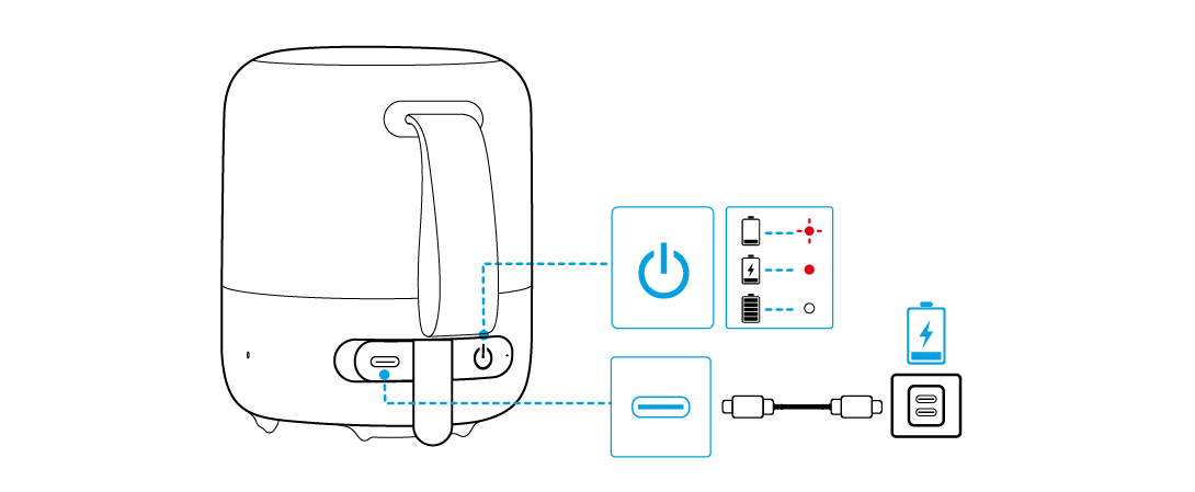 Batteristatus: Indikerer gjenstående batterinivå på høyttaleren.