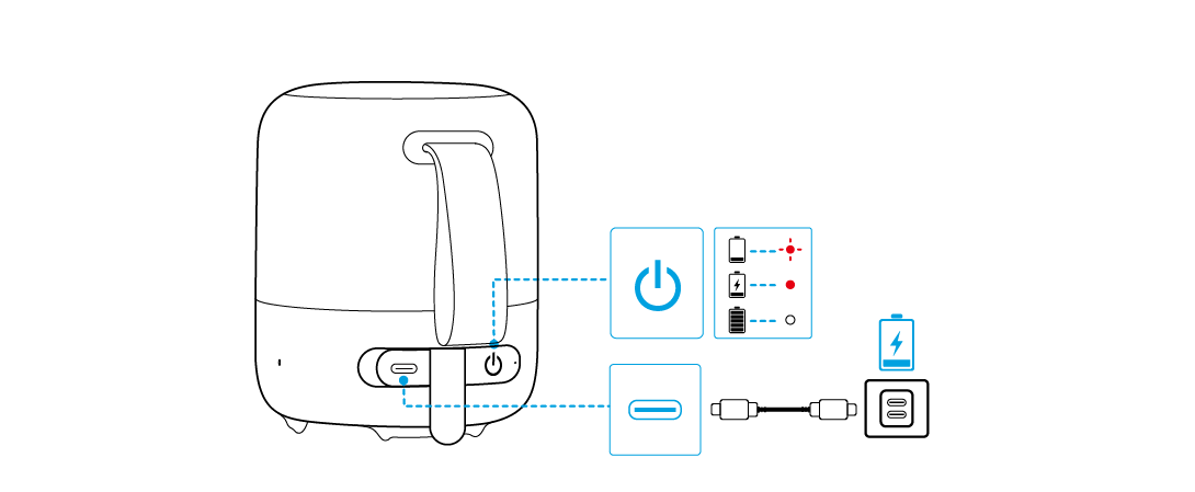 Batterijstatus: geeft het resterende batterijniveau van uw luidspreker aan.