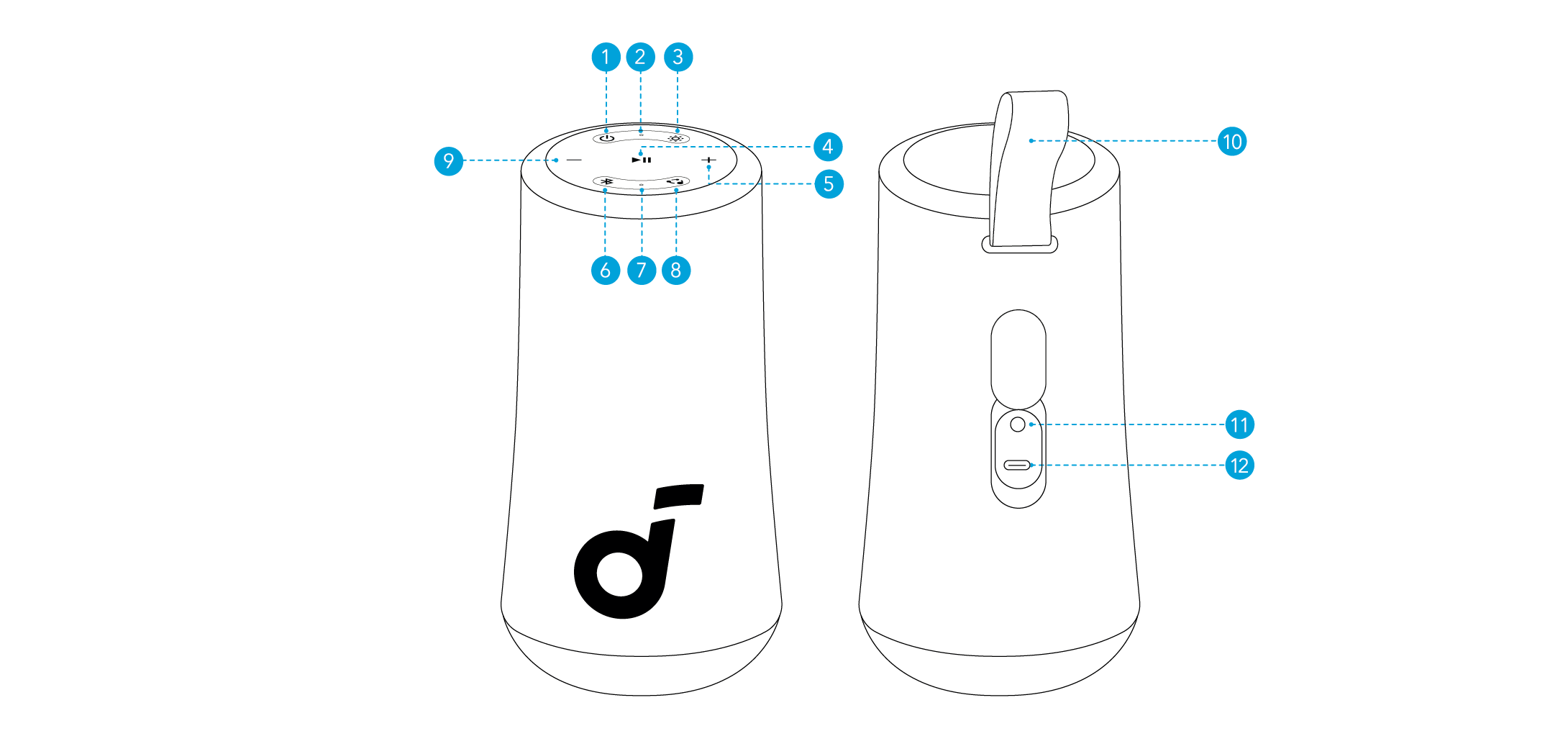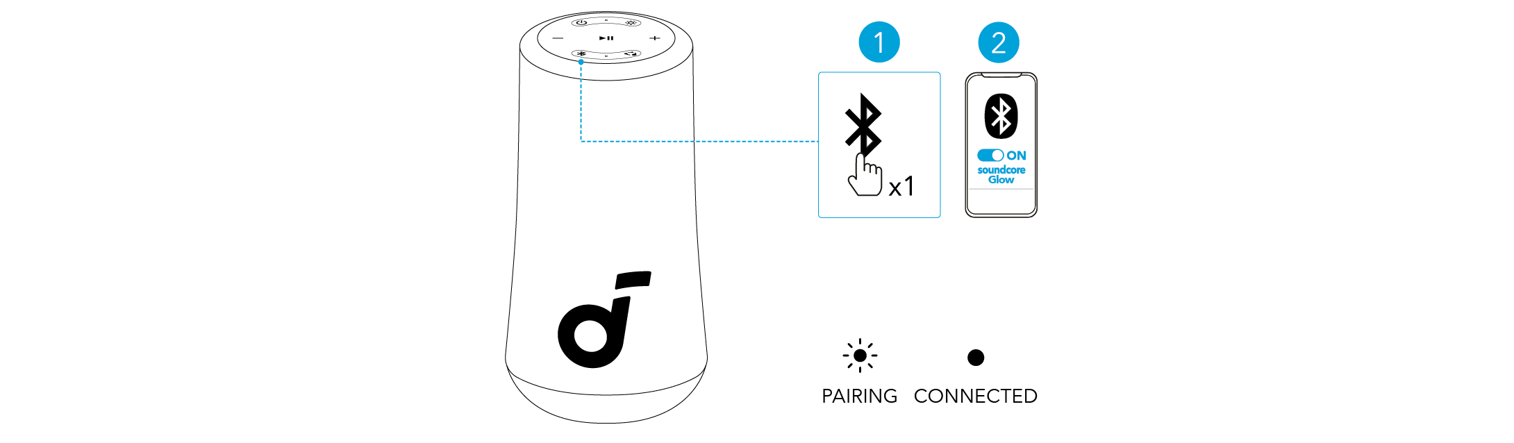 Pressione o botão Bluetooth para entrar no modo de emparelhamento Bluetooth e, em seguida, selecione "soundcore Glow Mini" na lista Bluetooth para conectar.