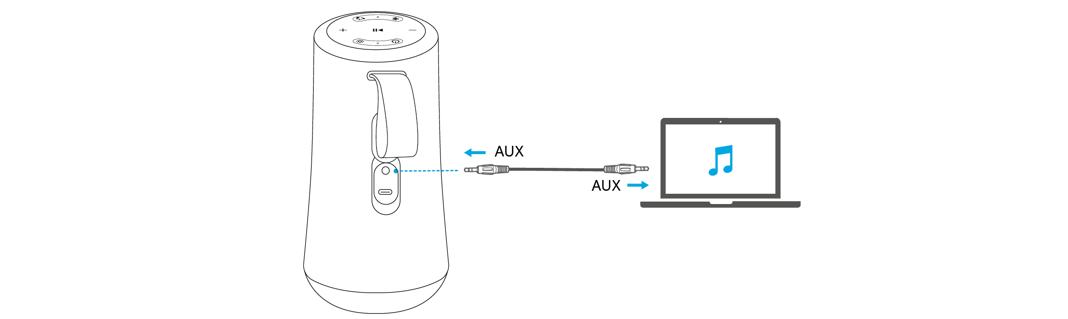 - Ao usar o modo AUX-In, controle a reprodução de áudio por meio do dispositivo conectado.