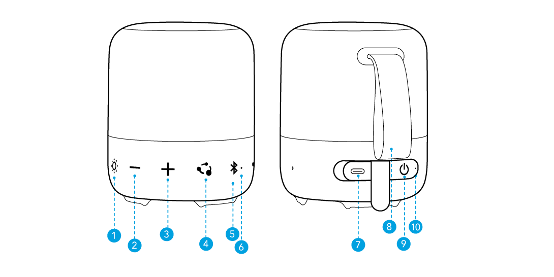 Pressione o botão Bluetooth para entrar no modo de emparelhamento Bluetooth e, em seguida, selecione "soundcore Glow Mini" na lista Bluetooth para conectar.