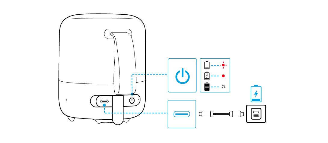 - Toda vez que você ligar sua caixa de som, ela se conectará automaticamente ao último dispositivo conectado caso ele esteja disponível no alcance do Bluetooth. Se não estiver disponível, pressione o botão Bluetooth para entrar no modo de emparelhamento Bluetooth.