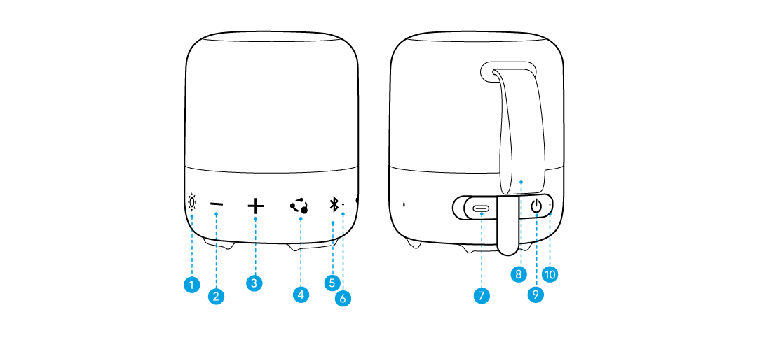 Naciśnij przycisk Bluetooth, aby wejść w tryb parowania Bluetooth, a następnie wybierz "soundcore Glow Mini" z listy Bluetooth, aby połączyć.