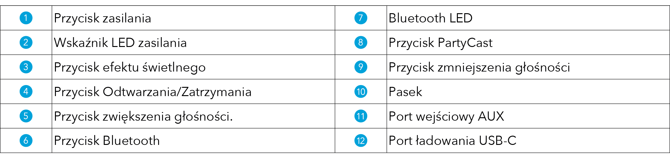 Głośnik można sparować z głośnikami soundcore, posiadającymi funkcję PartyCast.