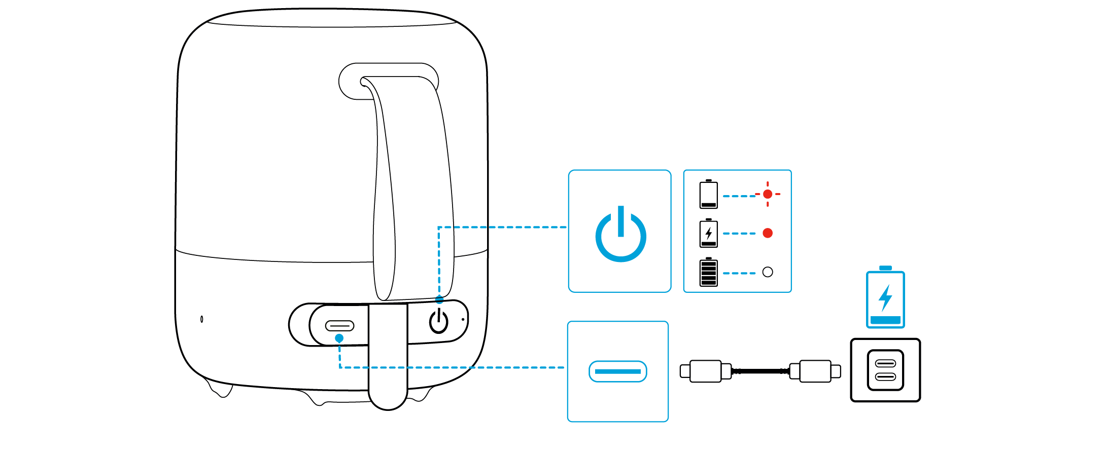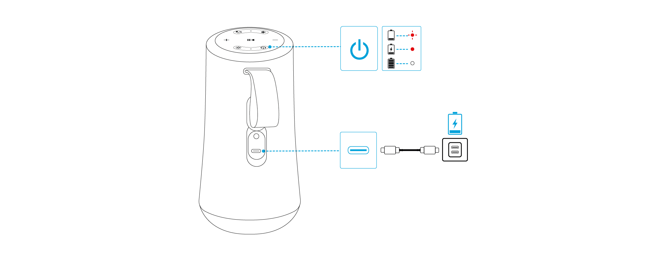 Stan baterii: Informuje o poziomie naładowania baterii głośnika.