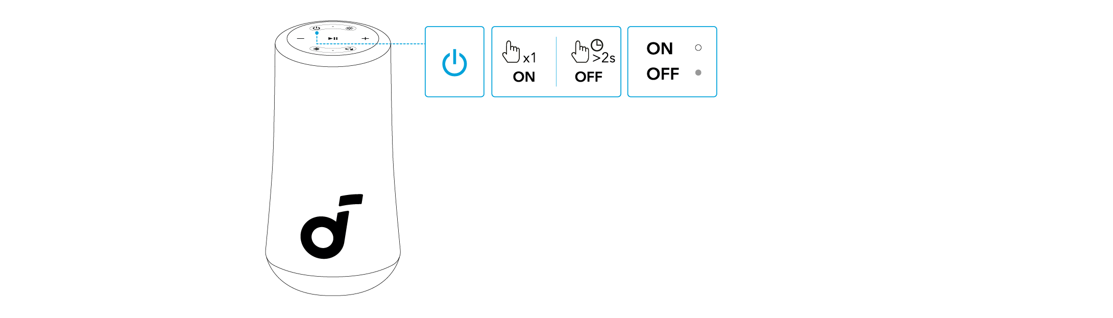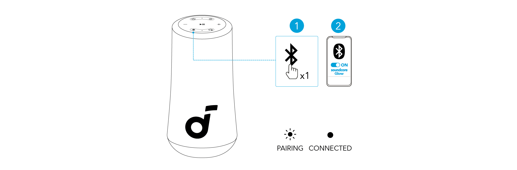 Naciśnij przycisk Bluetooth, aby wejść w tryb parowania Bluetooth, a następnie wybierz "soundcore Glow" z listy Bluetooth, aby połączyć.