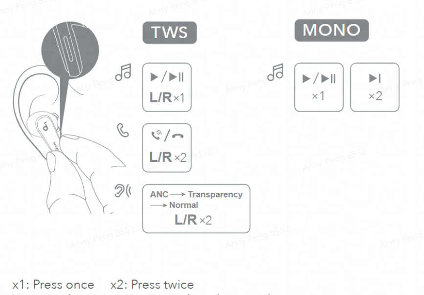 Note: In a noisy environment and at high volume, you may feel that the noise cancellation performance is not as strong.