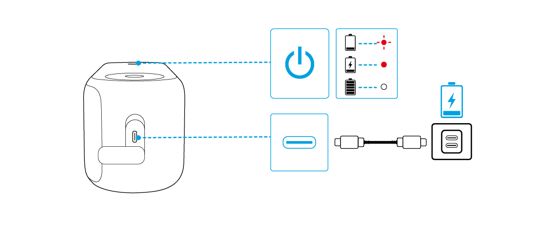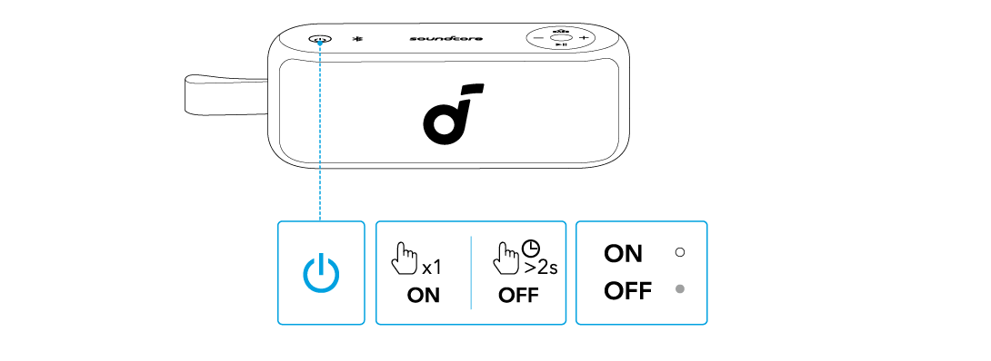 - 每次开机时,音箱都会自动连接至上次成功连接的设备(在蓝牙范围内)。如果未曾连接设备,请按下蓝牙按钮进入蓝牙配对模式。