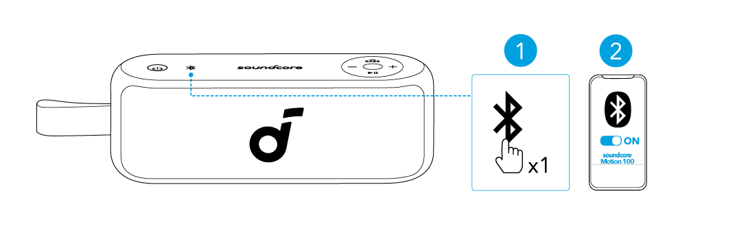 اضغط على زر Bluetooth للدخول في وضع الاقتران بلوتوث، ثم حدد "soundcore Motion 100" من قائمة Bluetooth للاتصال.