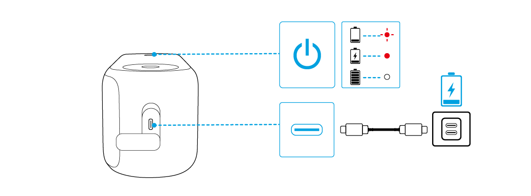 Batteristatus: Indikerar batterinivån på högtalaren.