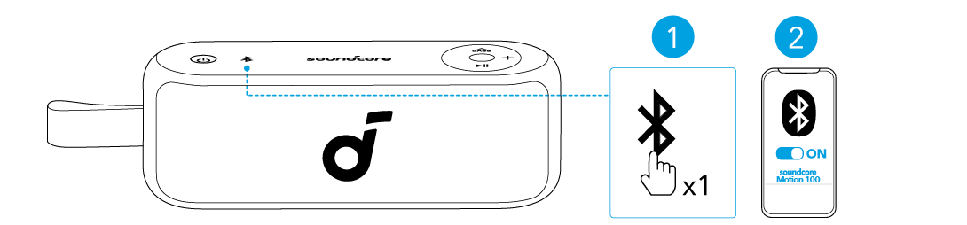 Tryck på Bluetooth-knappen för att komma in i Bluetooth-parningsläge, välj sedan "soundcore Motion 100" från Bluetooth-listan för att ansluta.