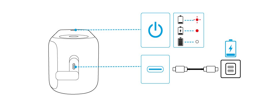 Batteristatus: Viser din højttalers tilbageværende batteriniveau.