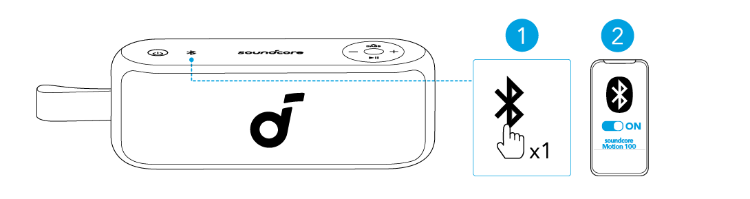 Tryk på Bluetooth-knappen for at komme ind i Bluetooth-parringstilstand, og vælg derefter "soundcore Motion 100" fra Bluetooth-listen for at oprette forbindelse.