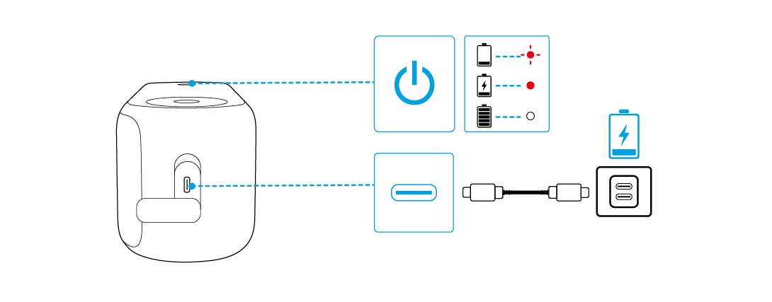 Batteristatus: Indikerer gjenstående batterinivå på høyttaleren.