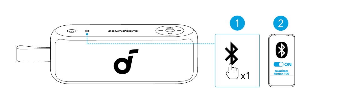 Trykk på Bluetooth-knappen for å gå inn i Bluetooth-parringmodus, og velg deretter "soundcore Motion 100" fra Bluetooth-listen for å koble til.