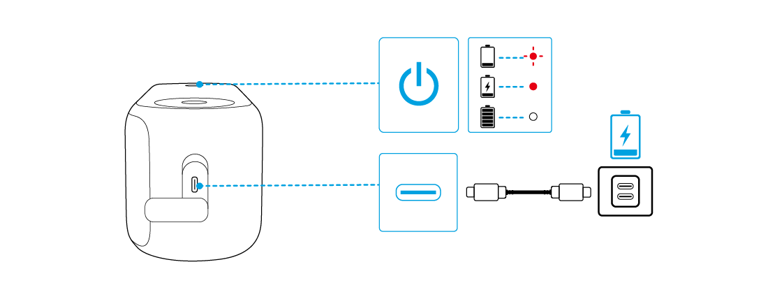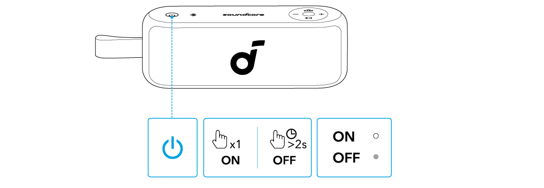 - Toda vez que você ligar sua caixa de som, ela se conectará automaticamente ao último dispositivo conectado caso ele esteja disponível no alcance do Bluetooth. Se não estiver disponível, pressione o botão Bluetooth para entrar no modo de emparelhamento Bluetooth.