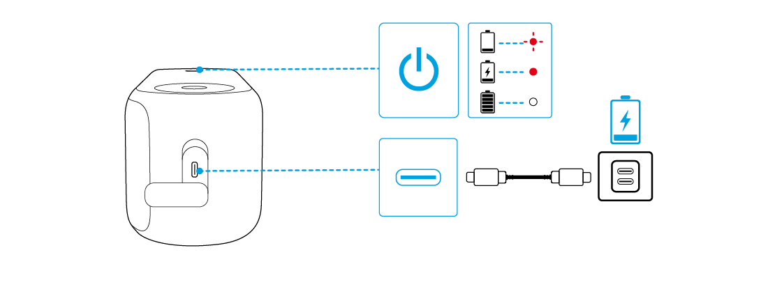 - Ogni volta che si accende l'altoparlante, questo si collegherà automaticamente all'ultimo dispositivo collegato, se disponibile all'interno del raggio Bluetooth. Se ciò non avviene, premere il pulsante Bluetooth per attivare la modalità di associazione tramite Bluetooth.