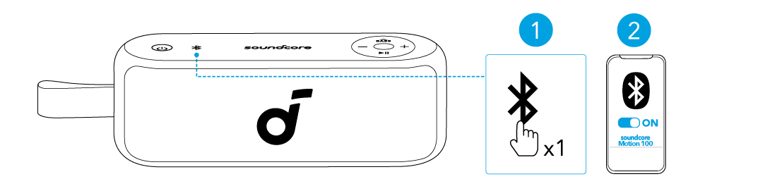 Premere il pulsante Bluetooth per entrare in modalità di accoppiamento Bluetooth, quindi selezionare "soundcore Motion 100" dalla lista Bluetooth per connettersi.
