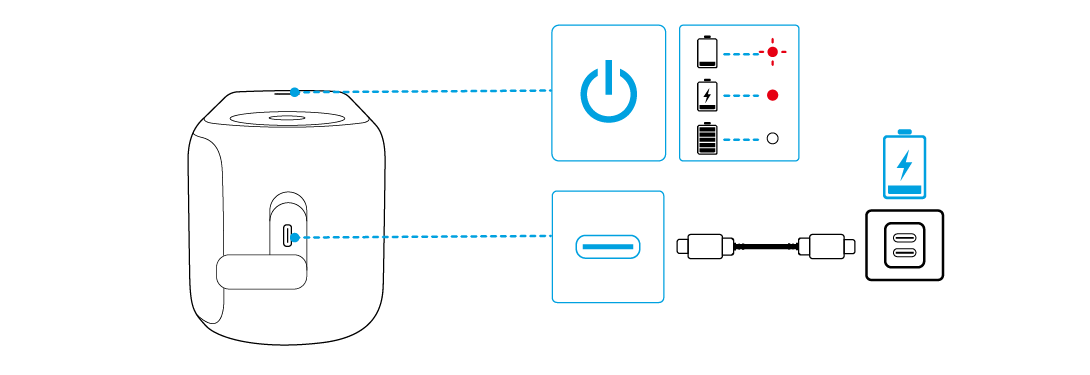 Stav baterie: Značí zbývající úroveň baterie reproduktoru.