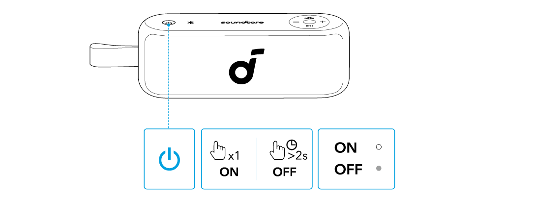 - Pokaždé, když reproduktor zapnete, automaticky se připojí k naposledy připojenému zařízení, pokud je v dosahu modulu Bluetooth. Stisknutím tlačítka Bluetooth vstoupíte do režimu párování Bluetooth.