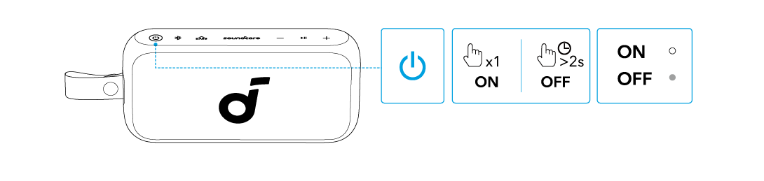 兩個相同的soundcore揚聲器可以配對,以實現立體聲聲音。 兩揚聲器都能播放相同音訊 (一個作為左聲道,另一個作為右聲道)。