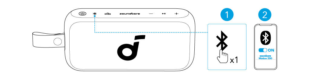 按下藍牙按鈕進入藍牙配對模式,然後從藍牙列表中選擇“soundcore Motion 300”進行連接。