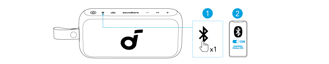 Tryk på Bluetooth-knappen for at komme ind i Bluetooth-parringsmode, og vælg derefter "soundcore Motion 300" fra Bluetooth-listen for at oprette forbindelse.