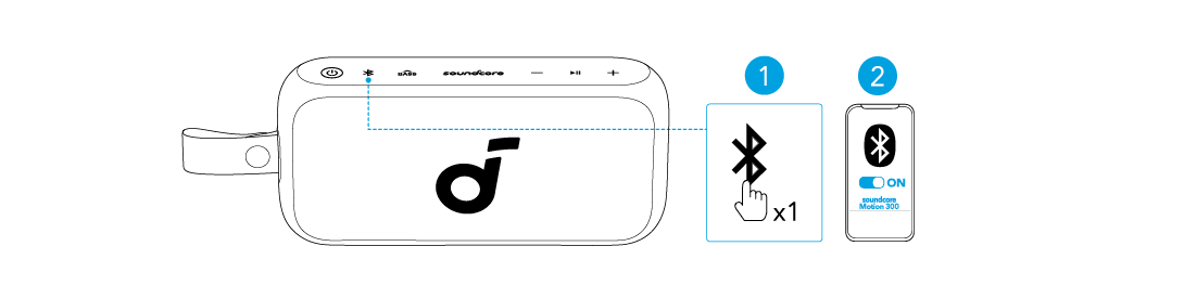 Trykk på Bluetooth-knappen for å gå inn i Bluetooth-parringmodus, og velg deretter "soundcore Motion 300" fra Bluetooth-listen for å koble til.