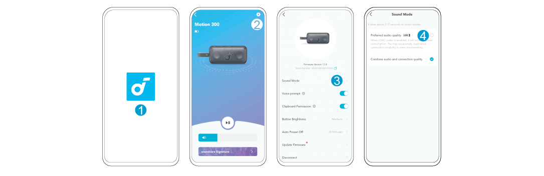 Nell'app soundcore, tocca l'icona Impostazioni > "Modalità audio" > "Qualità audio preferita".