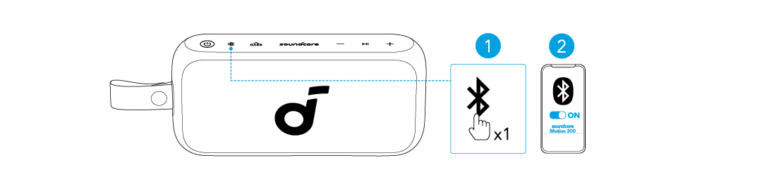 Premere il pulsante Bluetooth per entrare in modalità di accoppiamento Bluetooth, quindi selezionare "soundcore Motion 300" dalla lista Bluetooth per connettersi.