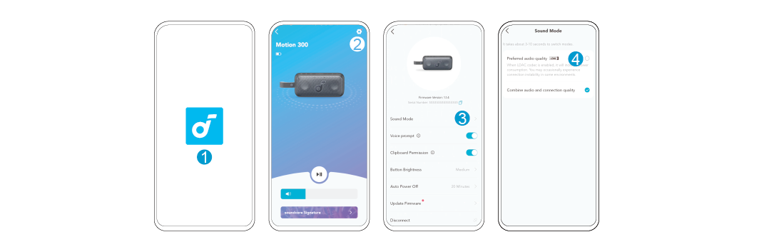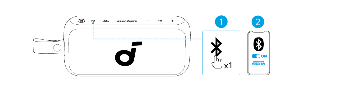 Paina Bluetooth-painiketta siirtyäksesi Bluetooth-pariliitostilaan, valitse sitten "soundcore Motion 300" Bluetooth-luettelosta yhdistääksesi.