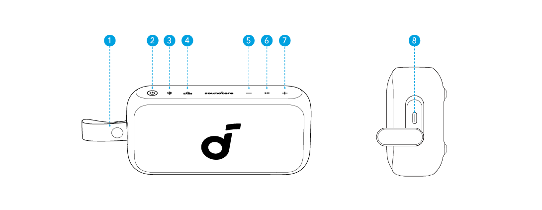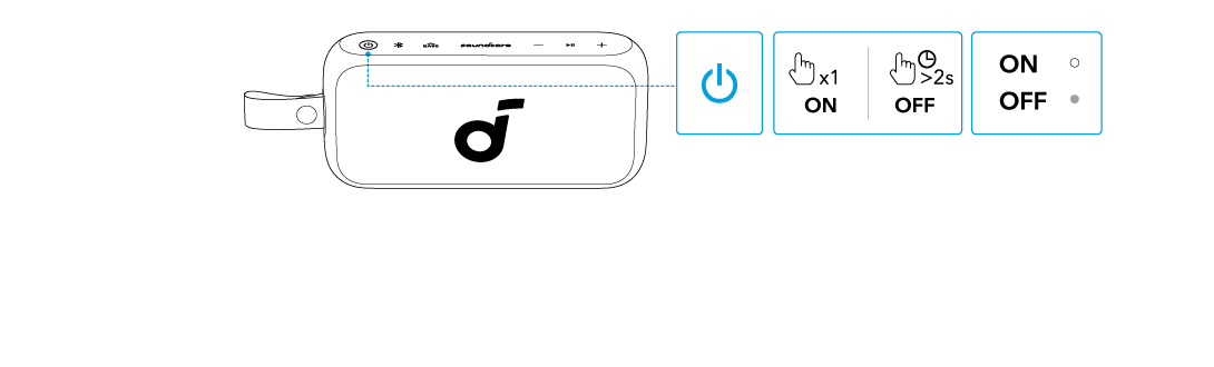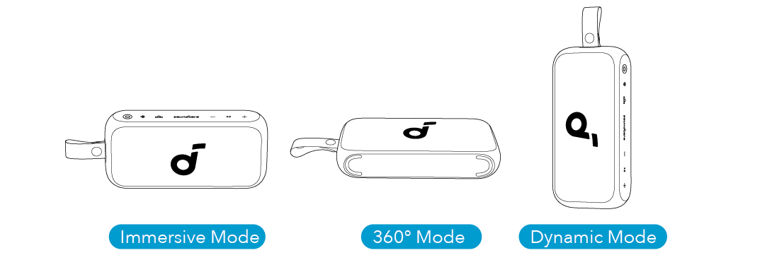 Dva identické reproduktory soundcore mohou být propojeny pro stereo zvuk. Oba reproduktory mohou přehrávat stejný zvukový obsah (jeden jako levý kanál a druhý jako pravý).