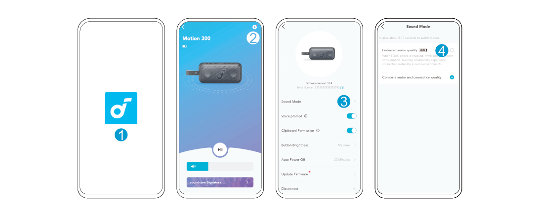 V aplikaci soundcore klepněte na ikonu Nastavení > "Zvukový režim" > "Preferovaná kvalita zvuku".