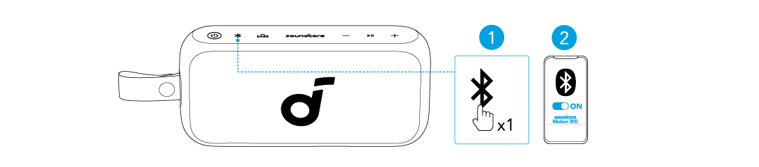 Stiskněte tlačítko Bluetooth pro vstup do párovacího režimu Bluetooth a poté vyberte "soundcore Motion 300" z Bluetooth seznamu pro připojení.