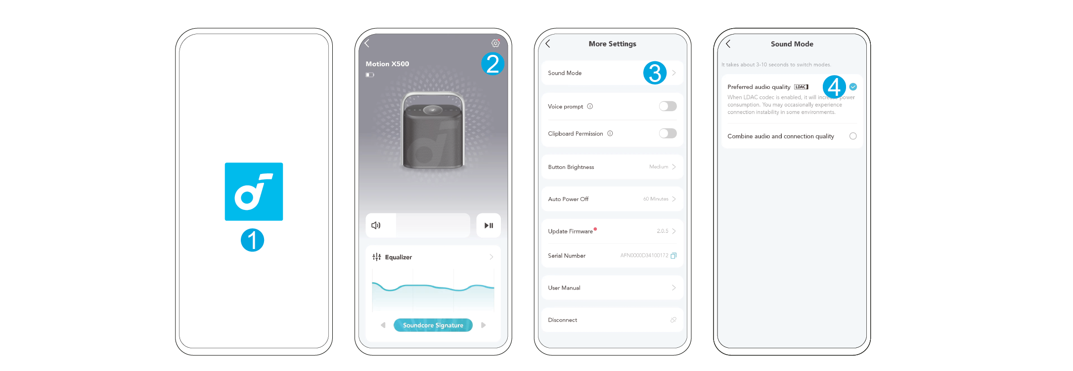 V aplikaci soundcore klepněte na ikonu Nastavení > "Zvukový režim" > "Preferovaná kvalita zvuku".