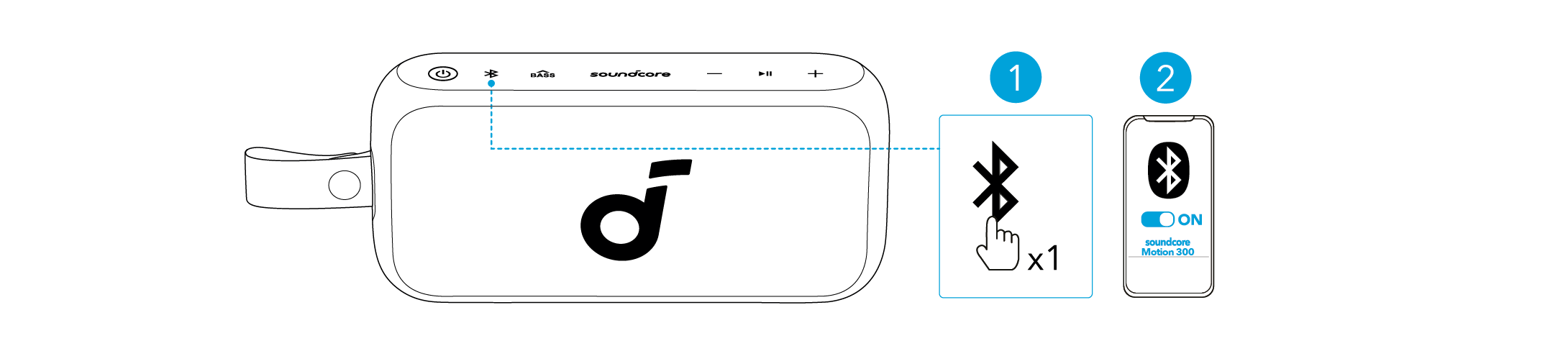 Stiskněte tlačítko Bluetooth pro vstup do párovacího režimu Bluetooth a poté vyberte "soundcore Motion 300" z Bluetooth seznamu pro připojení.