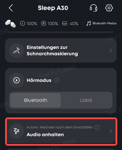 Bluetooth-Entkopplung: Lösche die Sleep A30 in den Bluetooth-Einstellungen deines Geräts.